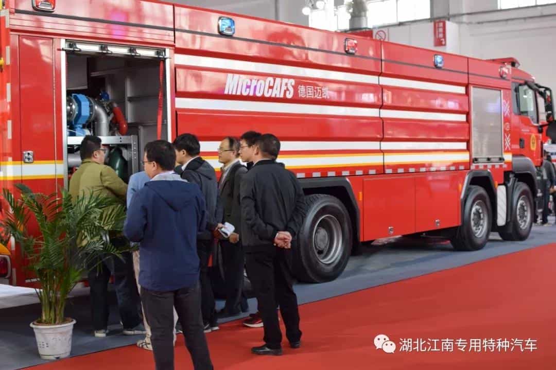 湖北江南汽車公司攜德國(guó)曼大流量壓縮空氣泡沫消防車和國(guó)六慶鈴泡沫消防車亮相展會(huì):